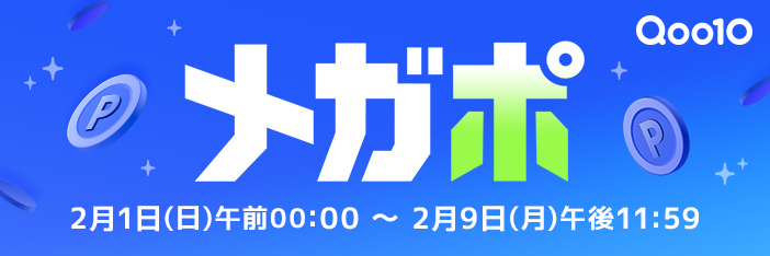 Qoo10メガポは2月1日(日)から開催!10%Qポイント還元+10%割引。お得なセールは2月9日(月)まで!